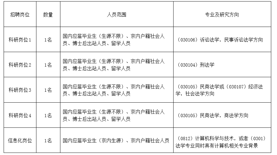 各招聘岗位专业参照教育部发布的《授予博士、硕士学位和培养研究生的学科、专业目录(2008更新版)》确定。应聘人员对于本人所学专业与之接近但不在上述参考目录中的,可与我单位联系,确认是否符合报名资格。