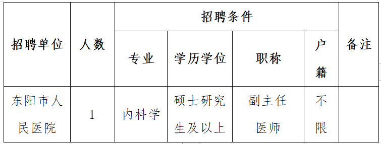 3.资格审核:招聘单位将根据招聘岗位及条件要求,对应聘人员的报名材料进行初审,初审通过后,由东阳市卫生健康局进行复核。