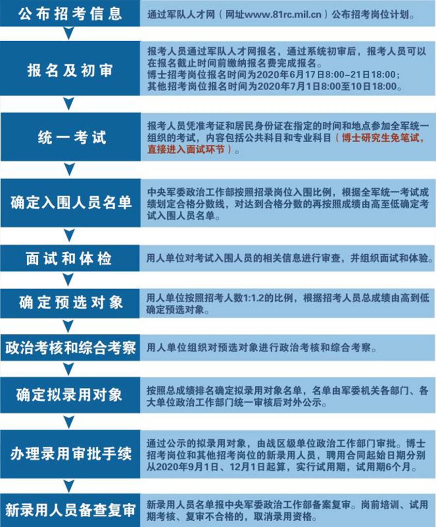 工资待遇:以现役军官为参照系,军队建立统一的文职人员工资制度。工资结构为基本工资+奖励工资+岗位津贴+科研绩效,基础收入水平为:博士人才18万/年左右、硕士人才14万/年左右。