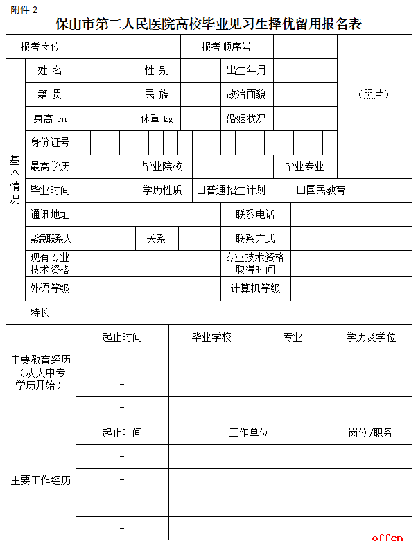 2.保山市第二人民医院高校毕业见习生择优留用报名表