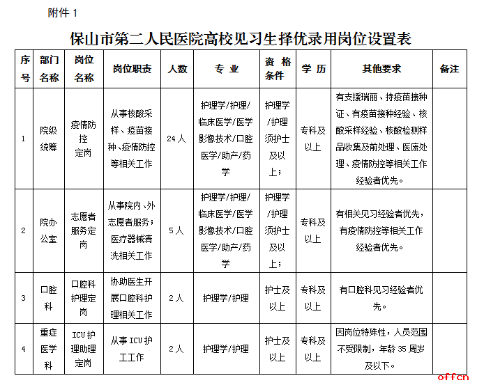 1.保山市第二人民医院高校见习生择优录用岗位设置表