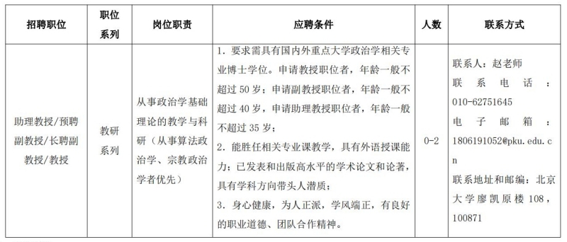 3.北京大学中国政治学研究中心人才招聘信息表(见附件);