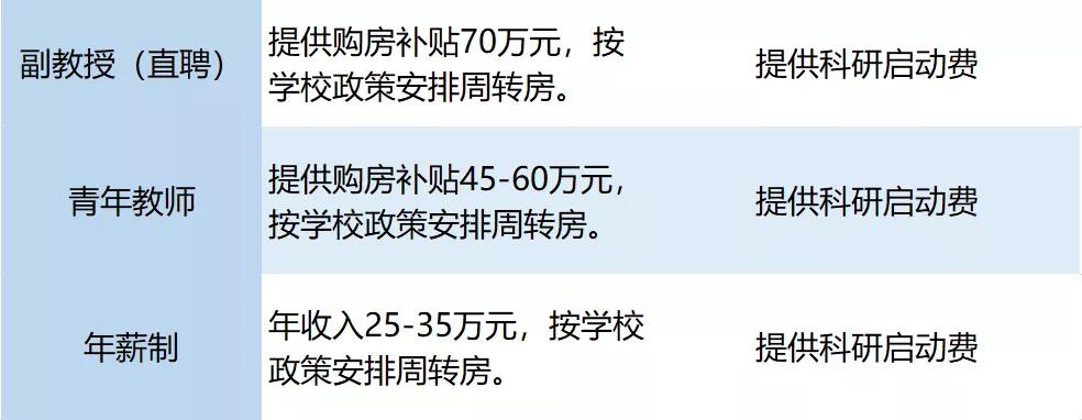 3.副教授岗位(直聘):面向在科学研究方面取得国内外同行认可的成就,具有向更高学术水平突破能力的优秀青年学者。年龄在35周岁(人文社科可放宽到40周岁)以下,一般应具有2年以上在海外知名大学或研究机构学习或工作经历,学术业绩突出。