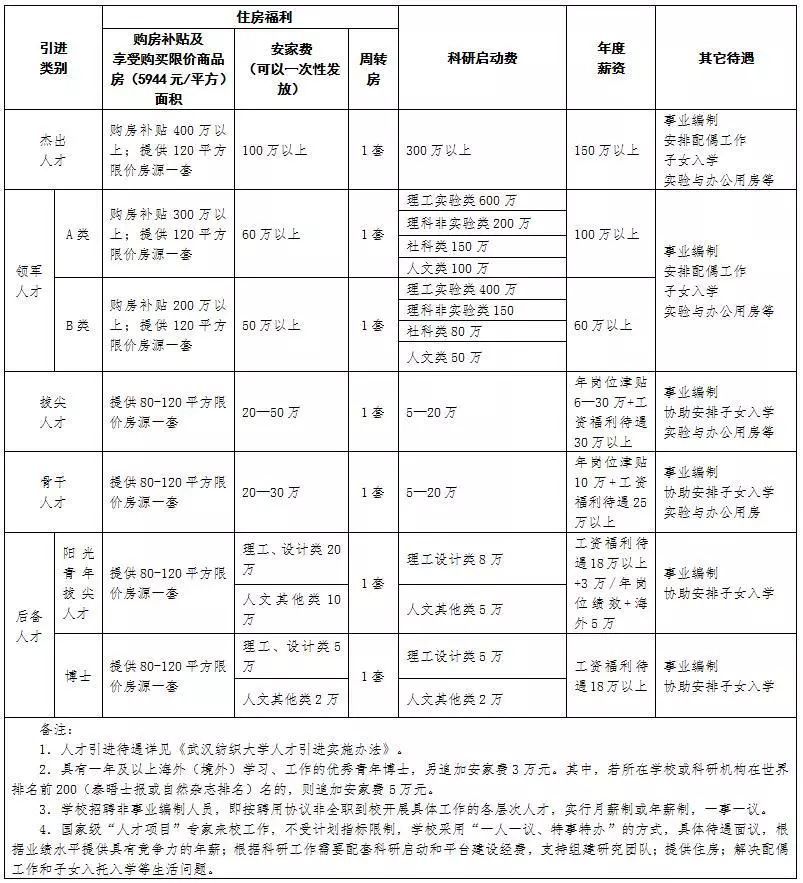 学校将为优秀人才提供良好的工作和生活条件,根据科研工作需要配套科研启动经费和科研平台建设经费,大力推荐申报国家级、省级人才项目,获批后提供相应条件与待遇(各类人才项目具体申报条件或标准请参照国家、湖北省政策文件)。