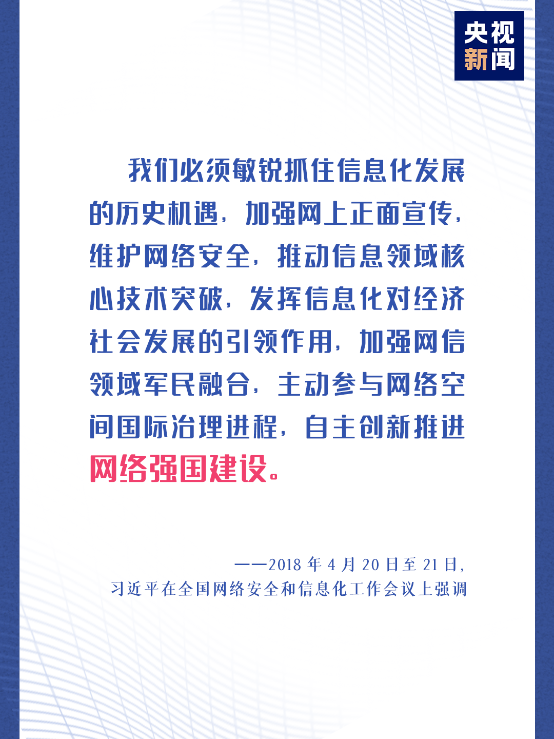 2014年2月27日,中央网络安全和信息化领导小组第一次会议召开时,习近平总书记强调,网络安全和信息化是事关国家安全和国家发展、事关广大人民群众工作生活的重大战略问题,要从国际国内大势出发,总体布局,统筹各方,创新发展,努力把我国建设成为网络强国。