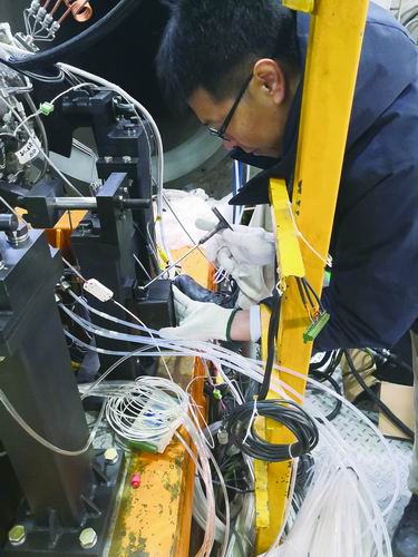 胡斌在扇形燃烧室实验现场工作。中科院工程热物理研究所供图