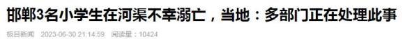 据6月30日报道,河北省邯郸市邯山区代召乡三名小学生在河渠溺亡。一名遇难学生家属告诉记者,是三个孩子结伴玩耍时不幸溺水。目前当地多个部门正处理此事。