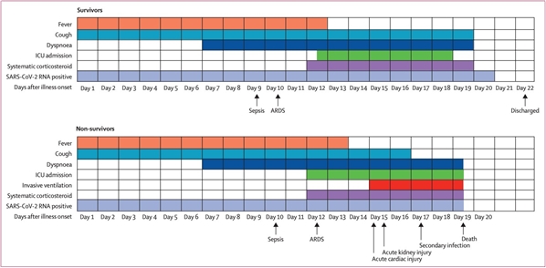 同时,研究人员首次关注了新冠病毒排毒时间,即病毒感染宿主细胞并继续繁殖的时间。研究显示,幸存者排毒持续时间的中位数为20天,最短8天,其中一例长达37天。