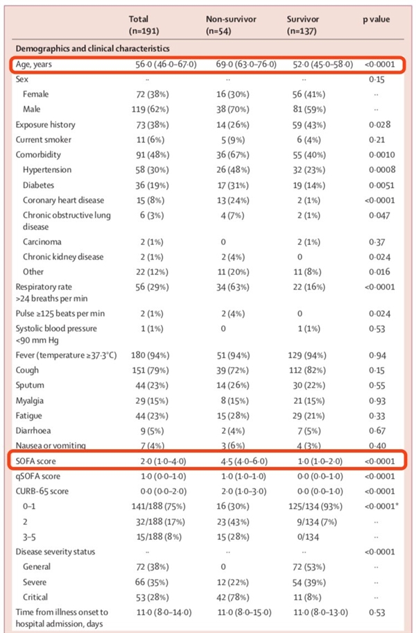 研究整理了191例病患的完整临床指标数据,发现死亡病患与幸存者间存在一系列指标差异。