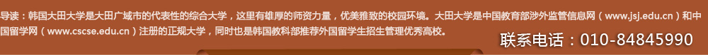 大田广域市是韩国的行政首都,即韩国的行政中心。总统在首尔办公,总理在大田办公。从地理位置来说,大田是韩国的中心,又是交通中心和物流中心。韩国陆海空三个司令部都在大田,所以大田又是军事中心。韩国的90%国家研究机关集中在大田(包括韩国硅谷),故而大田还是韩国科究和项目孵化中心。大田有20多所高校,文化气氛厚重,又是国际城市,1993年就已经有了大田世博会,比起2010年上海世博会早17年。因为在大田工作的韩国国家工作人员,科研单位,部队军官,大田市政府工作人员都想边工作边在大田大学攻读研究生。因此,中国学生在大田大学攻读研究生,可以在韩国的人脉关系上有很好的台阶,很好的平台! |